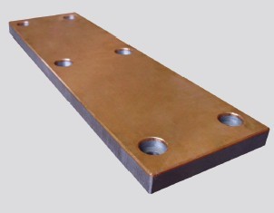 以低碳鋼為基體采用特殊工藝復(fù)合一層2mm 以上的軋制錫青銅板。由于軋制錫青銅板密度高、耐磨性好,極大的提高了產(chǎn)品使用壽命。此類產(chǎn)品按客戶來(lái)圖加工生產(chǎn),因采用鋼銅復(fù)合工藝, 降低成本25% 以上。廣泛用于各類機(jī)器、機(jī)械設(shè)備滑動(dòng)副。